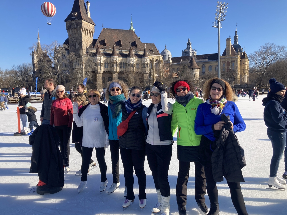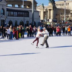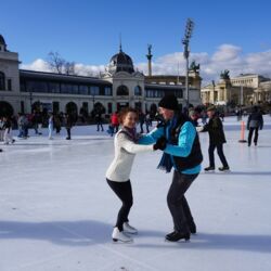 Dabei haben wir Kontakt mit der Leiterin des Eistanzkreises Stadtpark (Verein Varosligeti Jégtánckör) Frau Marta Antalne Lugosi aufgenommen. Dies war so nett und hat uns bei der Organisation des Tanzkreis auf dem Stadtpark Eislaufplatz (Városligeti Műjégpálya) geholfen.