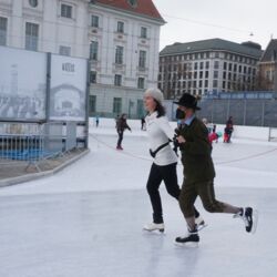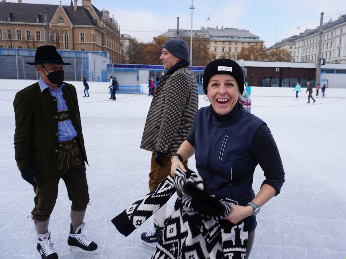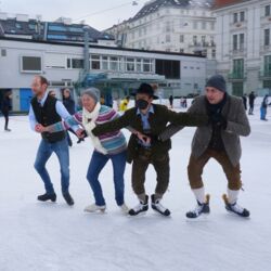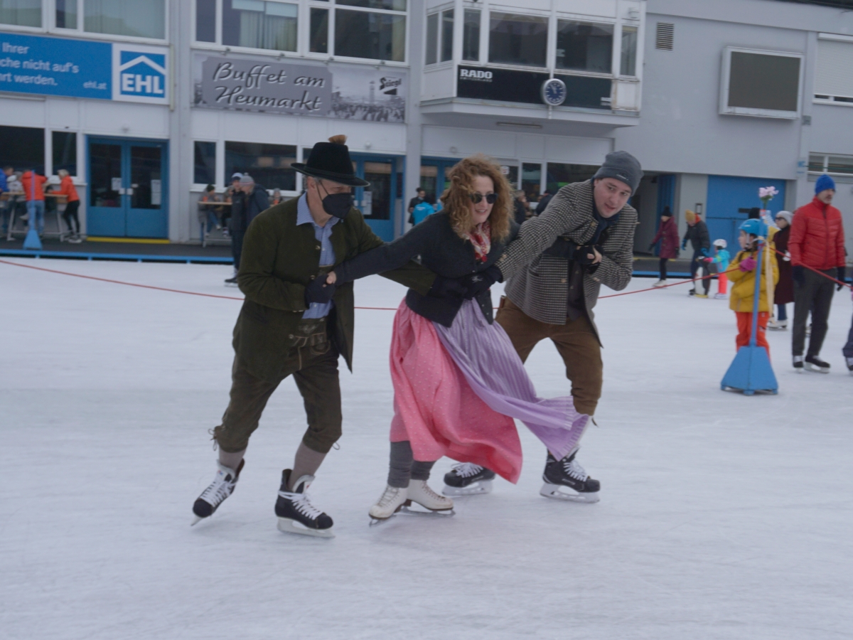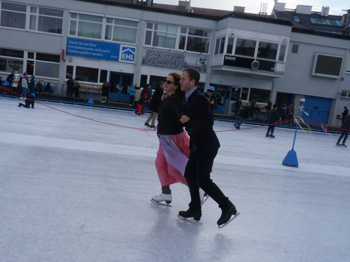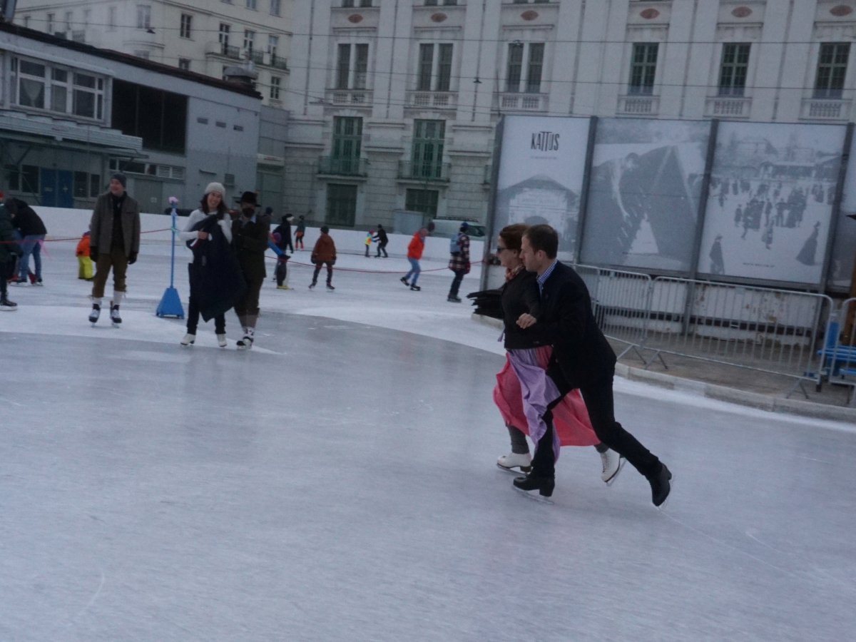Wir danken dem Wiener Eislauf-Verein für die Organisation der Musikkapelle - ganz besonders Christoff. Der Wunsch mit einer Blasmusik wie vor 100 Jahren zu spielen hatten Gustav und ich schon anläßlich der Aufnahme des Rundtanzens in die Liste des Immateriellen Kulturerbes der UNESCO.