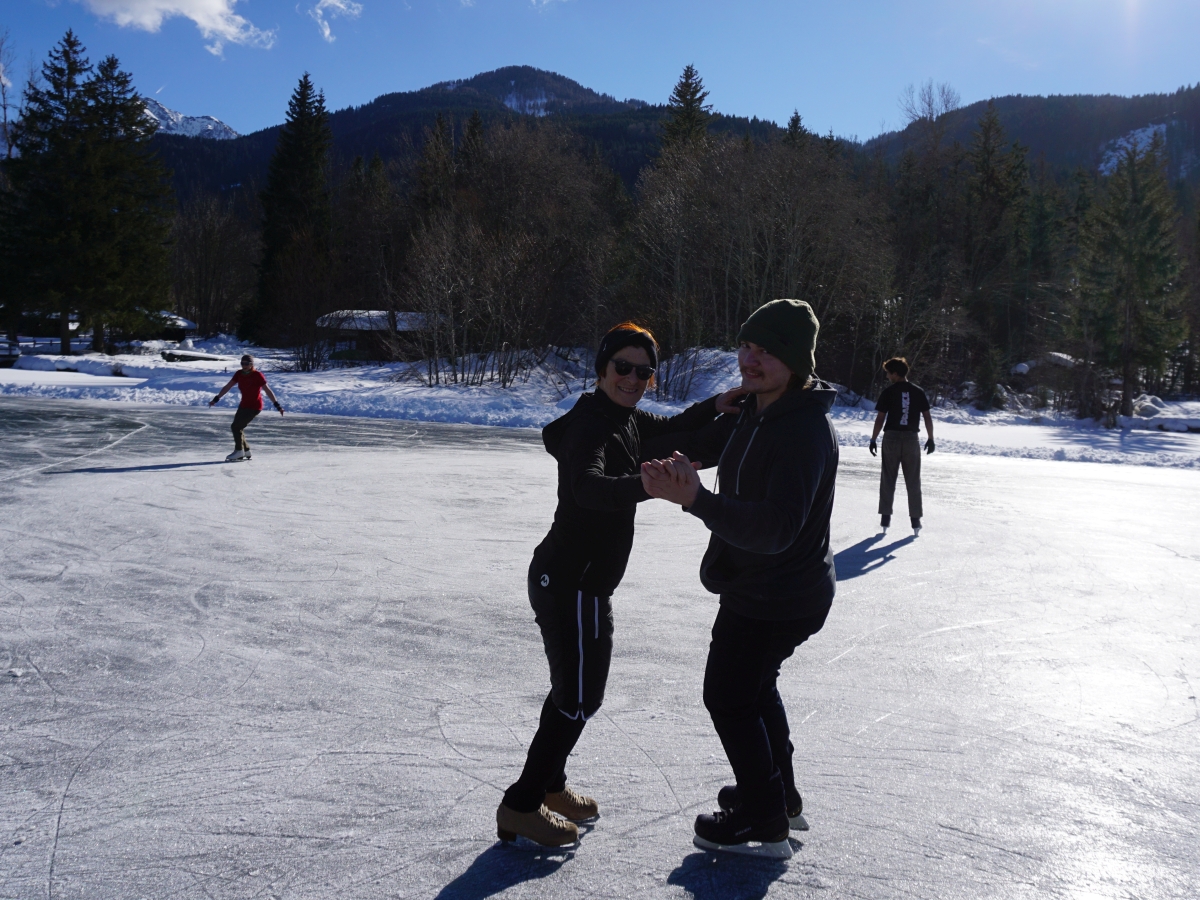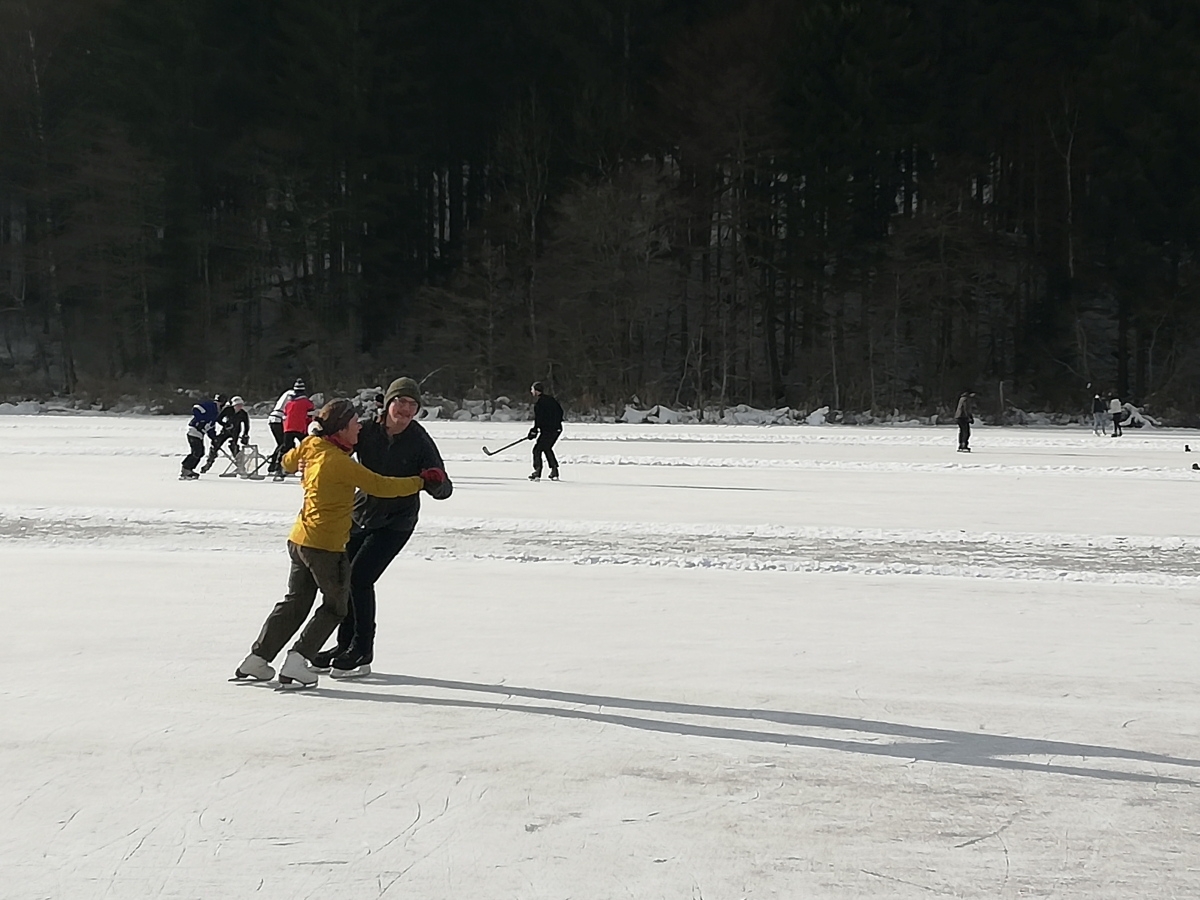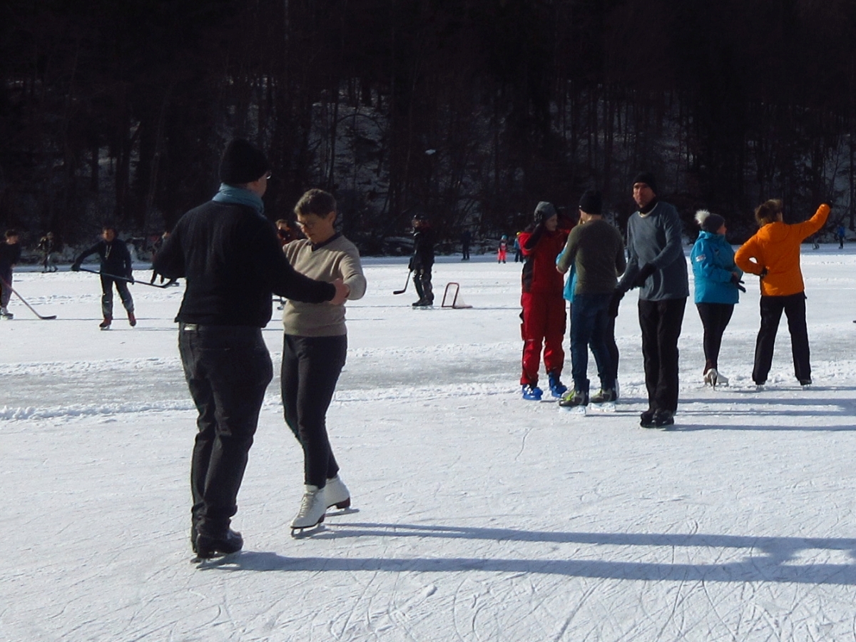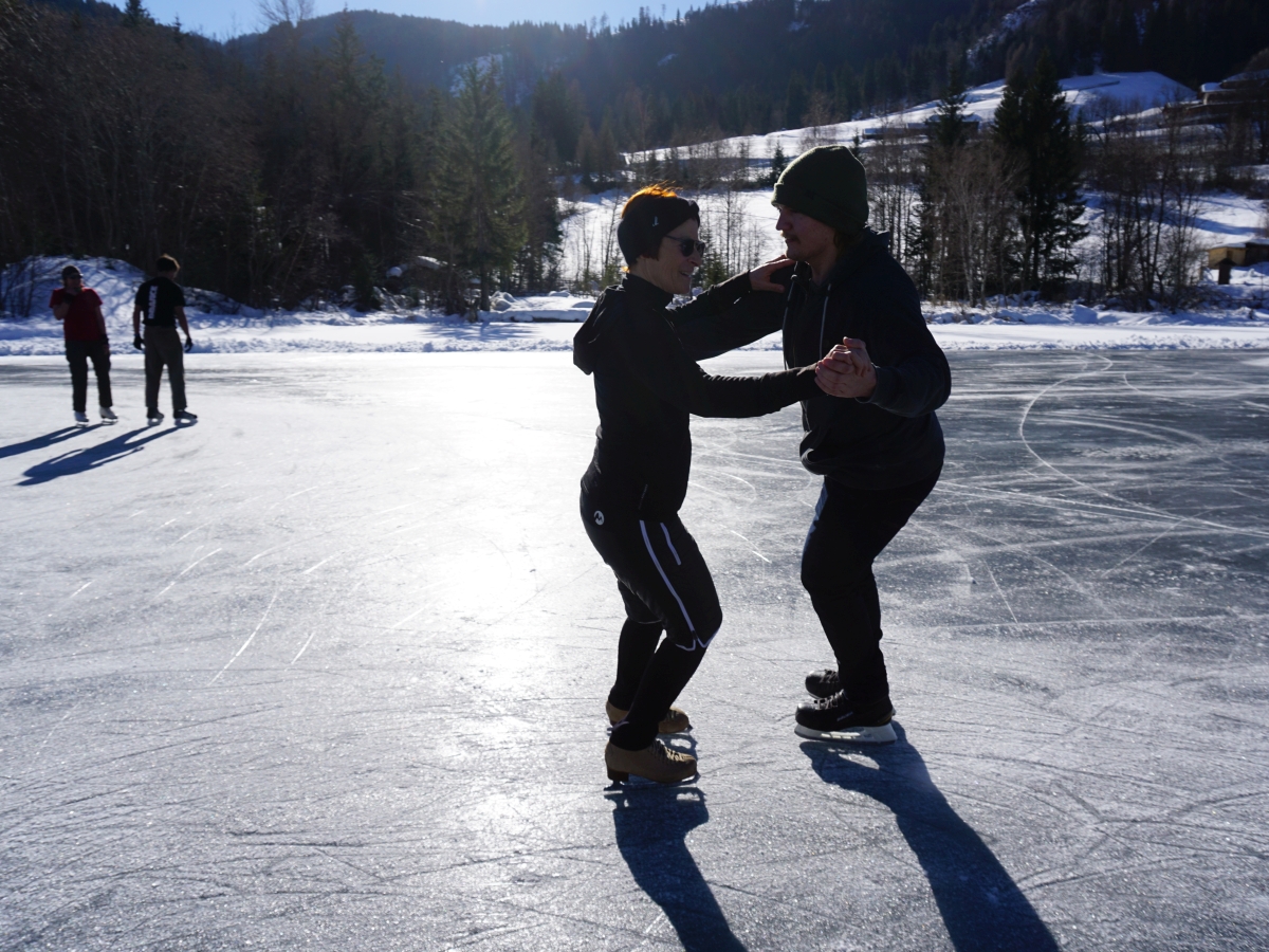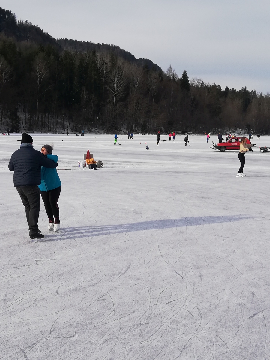 Nina Weiß hat ihre Eiskunstlaufschülerinnen mitgenommen und es haben sich viele EisläuferInnen den Walzer am Eis von uns zeigen lassen. Sogar der Obmann vom Eislaufverein Wörthersee und seine Frau haben das Tanzbein geschwungen ;-)