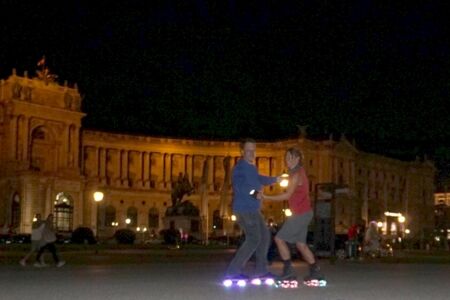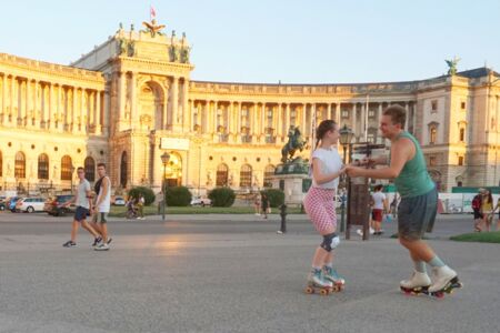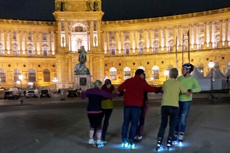 Dabei wurden wir besonders am Heldenplatz von vielen angesprochen, die das Tanzen am Asphalt auch einmal probieren wollten und schnell Feuer gefangen haben. Das Schöne daran, das Tanzen wurde von Speedskatern, von Freestylern und auch von Jamskatern ausprobiert. Letztere tanzen mit Rollschuhen anspruchsvolle „moves“ fast am Platz, manchmal im Wohnzimmer oder auf Rollschuhdiskos. Umgekehrt versuchten sich auch Freestyler, welche oft mit einem Affenzahn rückwärts unterwegs sind und gewagte Sprünge ganz locker hinlegen am Wiener Walzer. Dieser war auch wie ein Magnet für die zahlreichen Passanten und Touristen – kaum ertönte der Walzer, hatten wir plötzlich viel Publikum vor der Hofburg.